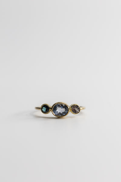 Bague or jaune 18ct, tourmalines 1.13ct et grenat 0.38ct.