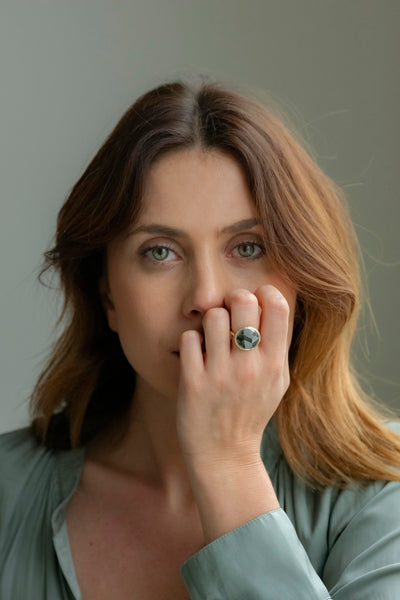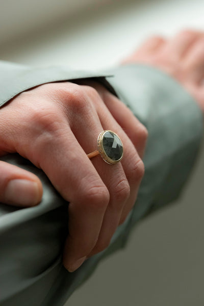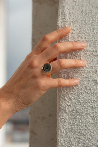 Bague en or jaune et or blanc 18ct, diamants gris 6.69ct.