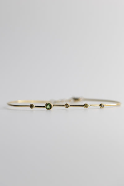 Bracelet en or jaune 18ct, tourmaline 0.2ct et quatre diamants 0.12ct.