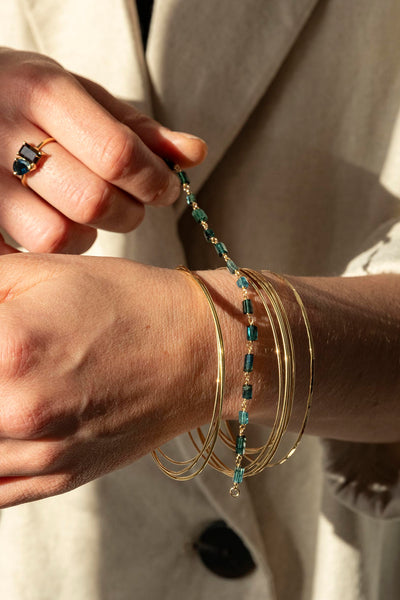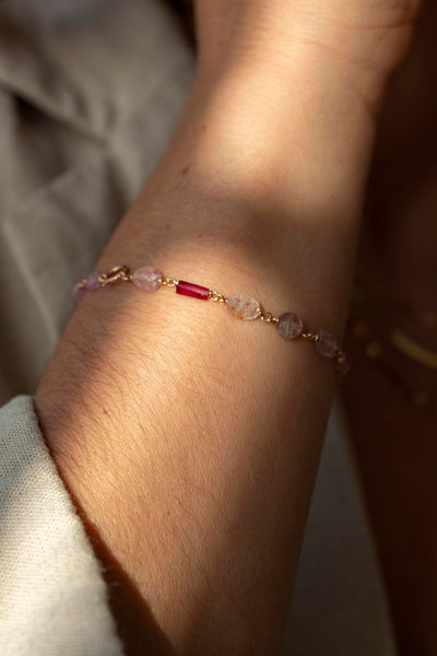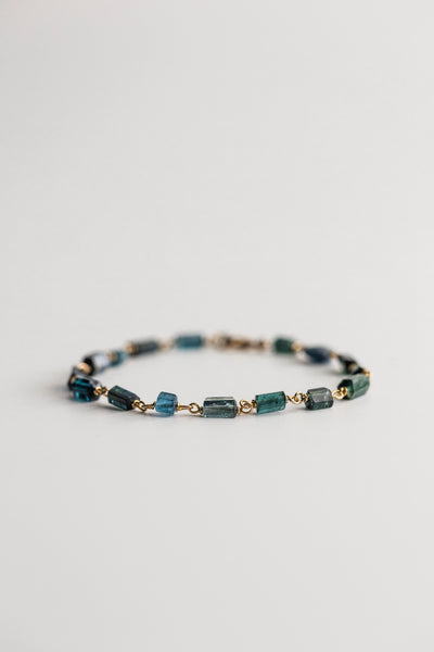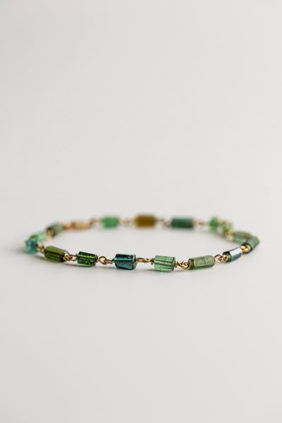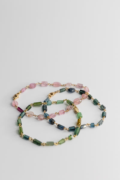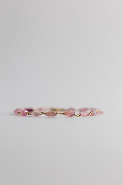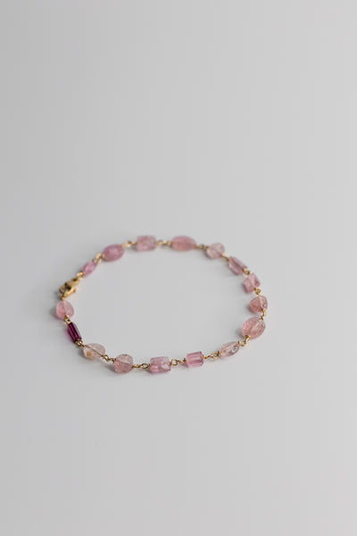 Bracelet en or jaune 18ct, tourmalines roses, vertes ou bleues.